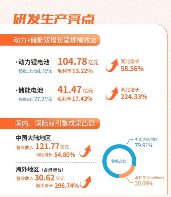 公司表示,相比去年同期,今年國軒高科一直推行的“國際化”戰(zhàn)略和“做大儲能”戰(zhàn)略初見成效,其中海外業(yè)務(wù)同比增長296.74%;公司“做大儲能”戰(zhàn)略穩(wěn)步落地:儲能營收41.47億元,同比增長224.33%。前期在產(chǎn)能、市場、技術(shù)等方面的戰(zhàn)略布局逐步順利落地。