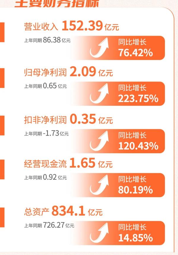 公司扣非歸母凈利潤實現(xiàn)轉(zhuǎn)正至3537.01萬元,同比增長120.43%,經(jīng)營性凈現(xiàn)金流1.65億元,同比增長80.19%。