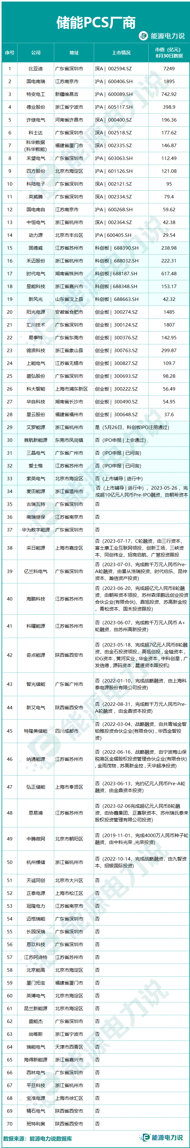 能源電力說(shuō)根據(jù)公開(kāi)數(shù)據(jù),整理了70家有儲(chǔ)能PCS產(chǎn)品的廠商。