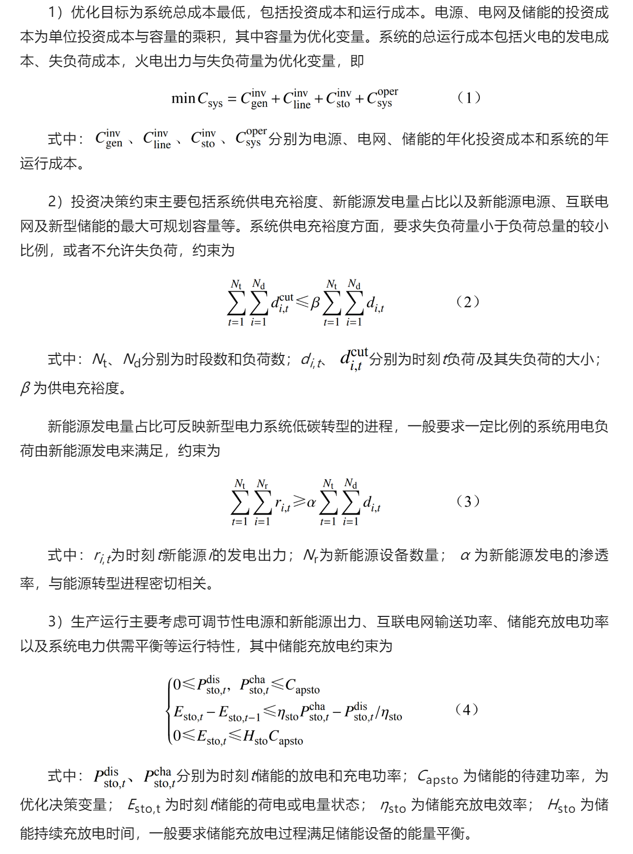 不同類型儲能充放電效率、持續(xù)充放電時長、成本各不同,不再區(qū)分不同類型儲能跨時間尺度平衡的特點,允許不同類型儲能基于時序曲線決定充放電,從經(jīng)濟性最優(yōu)的角度開展統(tǒng)籌優(yōu)化。其他詳細(xì)數(shù)學(xué)表達(dá)可進(jìn)一步參考文獻(xiàn)[11, 15]。