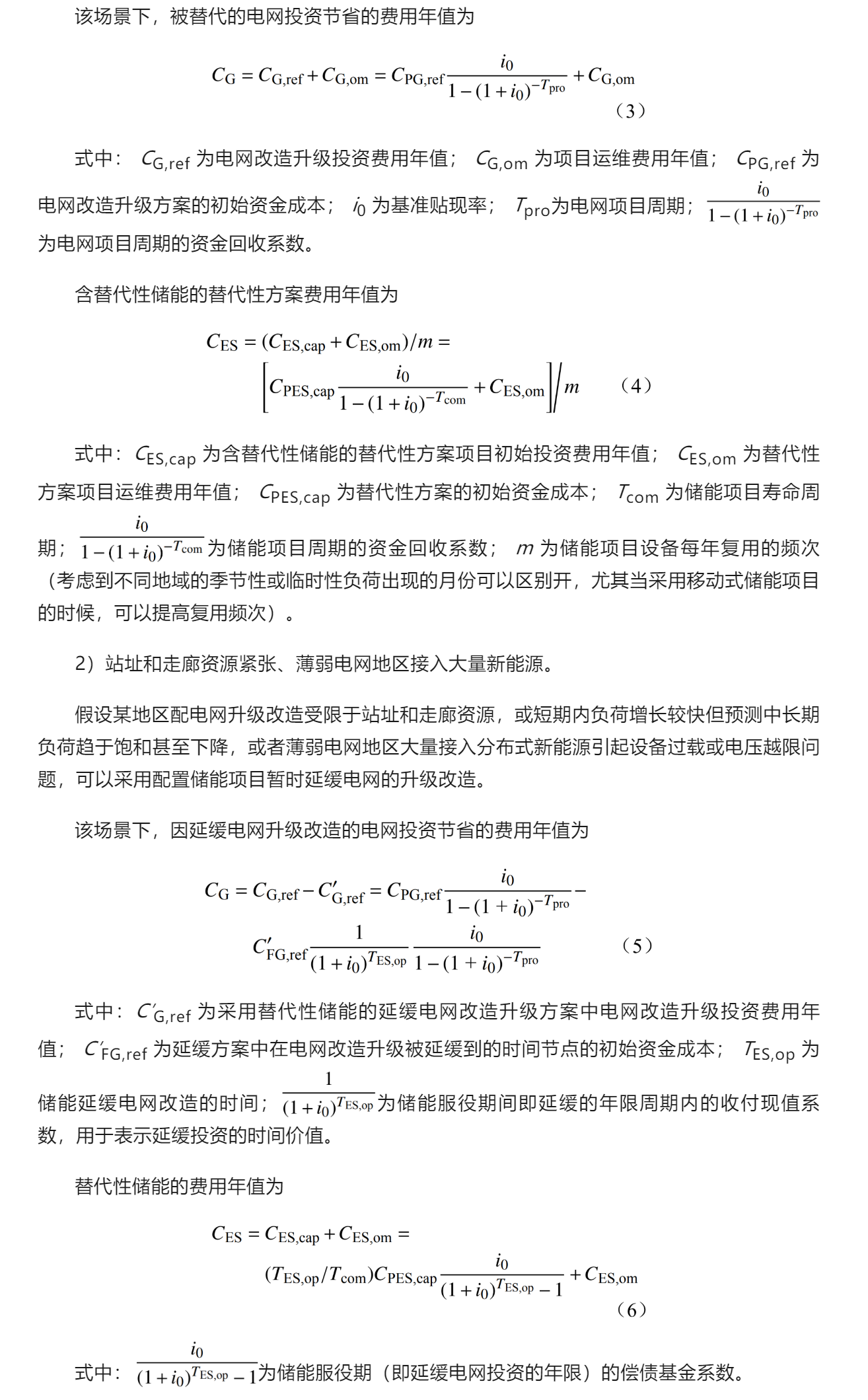 針對(duì)季節(jié)性或臨時(shí)性負(fù)荷增長(zhǎng)、站址資源緊張、農(nóng)村電網(wǎng)大量接入分布式新能源等典型情況,通過(guò)技術(shù)經(jīng)濟(jì)性比較,若達(dá)到同等供電效果情況下,儲(chǔ)能投資全壽命周期成本小于電網(wǎng)建設(shè)成本、改造升級(jí)成本,可考慮利用新型儲(chǔ)能解決局部地區(qū)的輸配電容量或供電質(zhì)量問(wèn)題,替代或延緩輸配電投資。