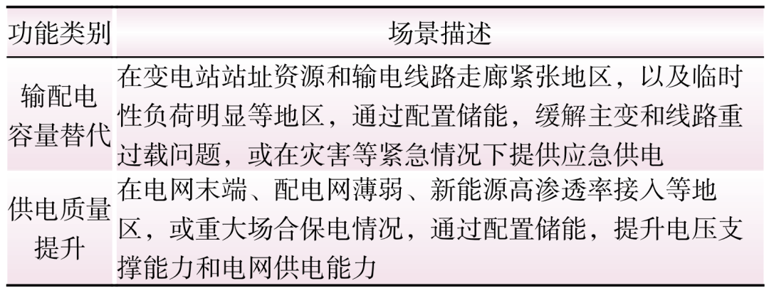 表1 電網(wǎng)功能替代性儲(chǔ)能應(yīng)用場(chǎng)景界定