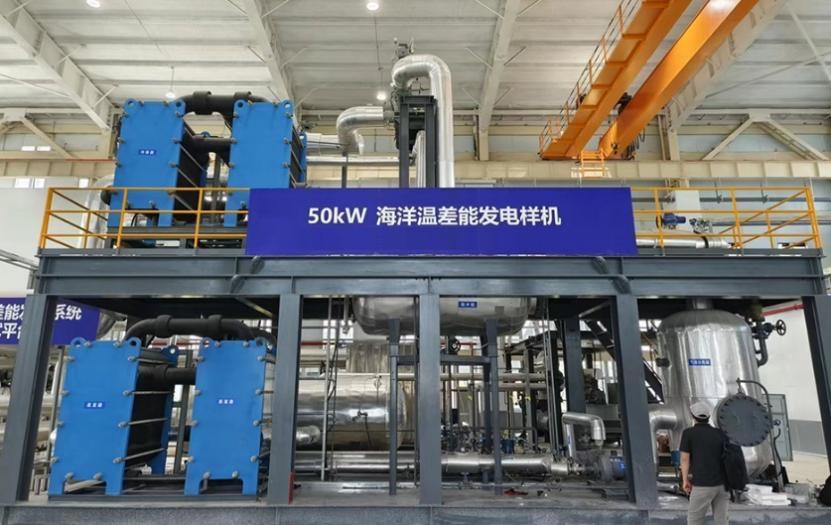 據(jù)介紹,自2020年起,研究總院承擔(dān)國(guó)家部委課題,聯(lián)合中國(guó)船舶集團(tuán)有限公司第七〇四研究所、上海交通大學(xué)、自然資源部天津海水淡化與綜合利用研究所、中國(guó)船級(jí)社、南方海洋科學(xué)與工程廣東省實(shí)驗(yàn)室(湛江)成立海洋溫差能發(fā)電攻關(guān)團(tuán)隊(duì),完成了我國(guó)首個(gè)用于工程化設(shè)計(jì)的《50kW海洋溫差發(fā)電系統(tǒng)工藝包》的開發(fā),突破海洋溫差能發(fā)電熱力循環(huán)技術(shù),明確了海洋溫差能發(fā)電的工藝流程,確定了系統(tǒng)與設(shè)備的關(guān)鍵參數(shù),并于2023年6月8日獲得中國(guó)船級(jí)社(CCS)的原則性批準(zhǔn)證書。基于該工藝包,研究團(tuán)隊(duì)完成了50kW溫差能發(fā)電關(guān)鍵設(shè)備樣機(jī)制造及兆瓦級(jí)概念方案的設(shè)計(jì)、深層海水提升與輸送系統(tǒng)設(shè)計(jì)、無(wú)藥劑添加深層海水反滲透濃縮處理方法研究、溫差能綜合利用專用平臺(tái)一體化設(shè)計(jì),并取得了《兆瓦級(jí)海洋溫差發(fā)電用向心式透平發(fā)電機(jī)組設(shè)計(jì)方案》《兆瓦級(jí)海洋溫差發(fā)電用工質(zhì)泵設(shè)計(jì)方案》《兆瓦級(jí)溫差能開發(fā)與深層海水綜合利用專用平臺(tái)一體化概念設(shè)計(jì)方案》的原則性批準(zhǔn)(AIP)證書。