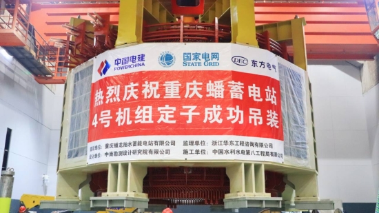 中國儲能網(wǎng)訊:8月31日,由水電八局承建的西南地區(qū)最大抽水蓄能電站——重慶蟠龍抽水蓄能電站最后一臺(4#)機組定子順利完成吊裝,至此,電站所有機組定子均“落座”成功。
