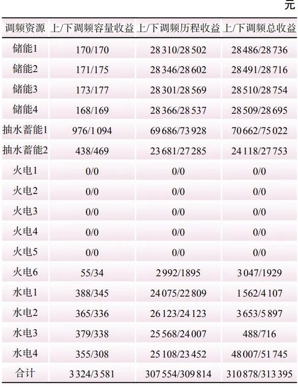 Table 11 Benefits of frequency modulation resources considering efficiency factors