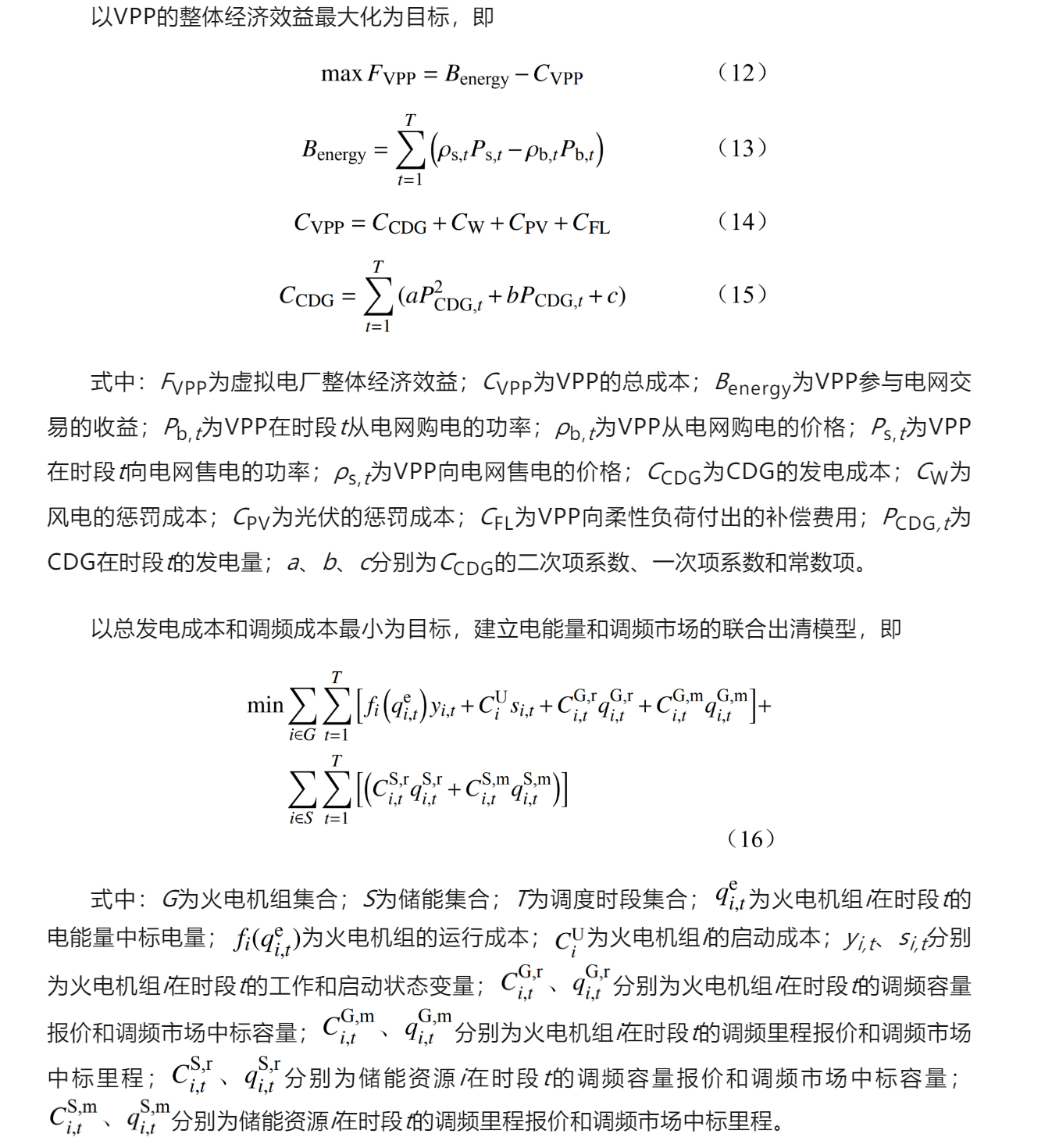 能源綠色低碳轉(zhuǎn)型下,電力系統(tǒng)調(diào)峰調(diào)頻缺口日益增大,儲能憑借靈活爬坡和雙向調(diào)節(jié)特性,可作為獨立主體或虛擬電廠(virtual power plant,VPP)內(nèi)部成員參與協(xié)調(diào)解決調(diào)峰調(diào)頻及新能源消納問題。分析了國內(nèi)外儲能參與電力市場概況,建立VPP聚合多分布式能源(distributed energy resource,DER)的調(diào)峰競標模型及整體效益最大的調(diào)峰競標策略;在以發(fā)電、調(diào)頻成本最小化為目標的電能量和調(diào)頻市場聯(lián)合出清模型基礎(chǔ)上,引入效率因子體現(xiàn)快速調(diào)頻資源的優(yōu)勢。算例驗證了VPP競標策略下儲能分配的收益優(yōu)于獨立運營模式;傳統(tǒng)和快速調(diào)頻交易品種參與日前市場設(shè)計的火-儲聯(lián)合出清模型較順次出清模式具備更高的社會效益,引入效率因子能提升優(yōu)質(zhì)調(diào)頻資源參與市場的積極性和節(jié)約電網(wǎng)總調(diào)頻成本的目的。