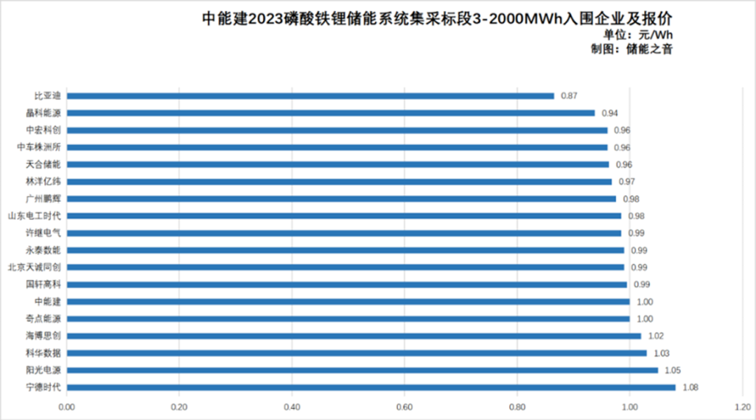 比亞迪報(bào)價(jià)為0.87元/Wh(4小時(shí)系統(tǒng)),全場(chǎng)最低