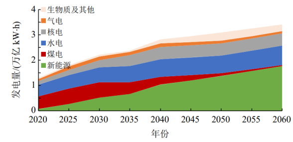 圖2 南方區(qū)域電源發(fā)電量結(jié)構(gòu)演進(jìn)路徑