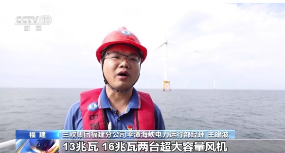 三峽集團(tuán)福建分公司平潭海峽電力運行部經(jīng)理 王建波:面對年有效施工窗口期不足四個月的情況下,(我們)成功安裝了13兆瓦、16兆瓦兩臺超大容量風(fēng)機,短時間內(nèi)兩次刷新“全球最大單機容量”海上風(fēng)電機組吊裝記錄。