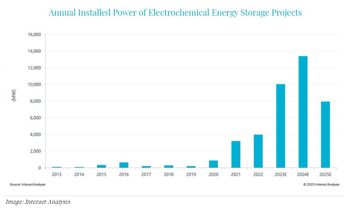 無論是在美國住宅儲能市場還是在電網(wǎng)規(guī)模儲能市場,部署的儲能系統(tǒng)裝機(jī)容量都在不斷增長,以趕上太陽能和風(fēng)力發(fā)電等間歇性可再生能源發(fā)電量的日益增長。Interact Analysis公司的這份研究報告表明,預(yù)計美國到2023年累計部署的儲能系統(tǒng)裝機(jī)容量將達(dá)到49.5GW,預(yù)計美國在2023年部署的儲能系統(tǒng)新增裝機(jī)容量將超過10GW。