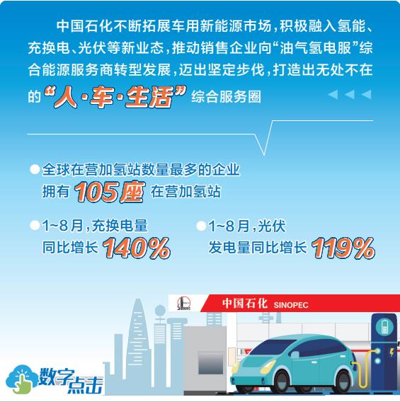 中國(guó)儲(chǔ)能網(wǎng)訊:中國(guó)石化積極布局加氫站、充換電站、光伏電站等新興業(yè)務(wù),堅(jiān)定向“油氣氫電服”綜合能源服務(wù)商轉(zhuǎn)型。截至8月底,累計(jì)注氫量、充換電量、光伏發(fā)電量同比均實(shí)現(xiàn)翻番。