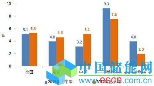 圖3 2013、2014年上半年各地區(qū)用電量增速情況圖
