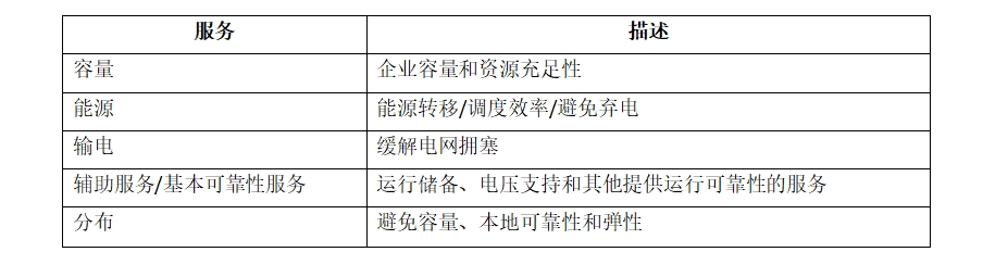 表2 儲能在電力系統(tǒng)服務的主要類別