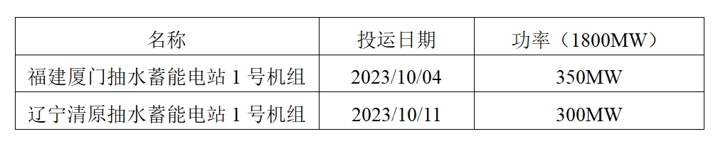 10月共投運(yùn)抽水蓄能項(xiàng)目2個(gè)——國網(wǎng)新源福建廈門抽水蓄能電站1號(hào)機(jī)組以及遼寧清原抽水蓄能電站1號(hào)機(jī)組。