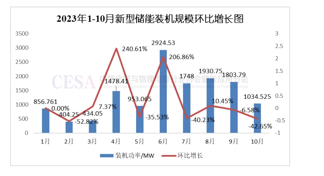 圖1 2023年10月新型儲(chǔ)能裝機(jī)規(guī)模環(huán)比增長圖