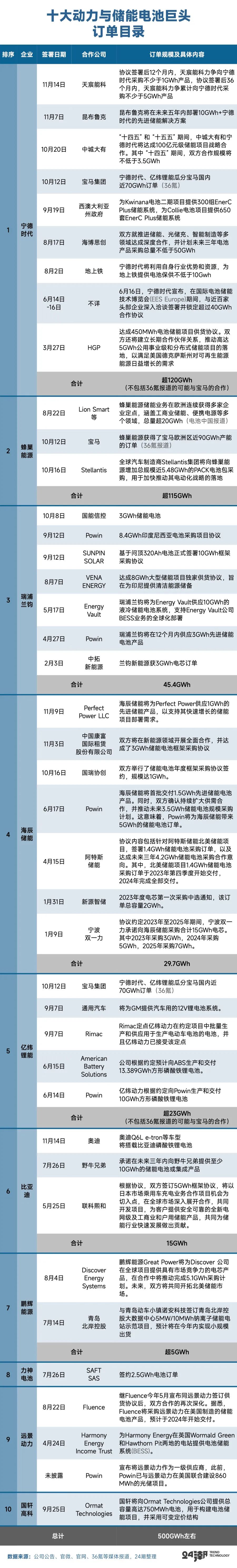 據(jù)「24潮團(tuán)隊(duì)」統(tǒng)計(jì),2023年至今十大動力/儲能電池巨頭至少已簽署41個(gè)重大合約,總規(guī)模合計(jì)超500GWh,這甚至超過了2022年國內(nèi)動力電池與儲能電池銷量之和。