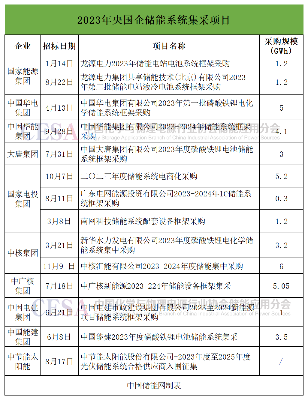據(jù)中國儲能網(wǎng)不完全統(tǒng)計,今年以來央國企儲能系統(tǒng)集采規(guī)模近40GWh。國電投5.2GWh儲能系統(tǒng)集采是央國企今年儲能系統(tǒng)集采中規(guī)模第二的項目。