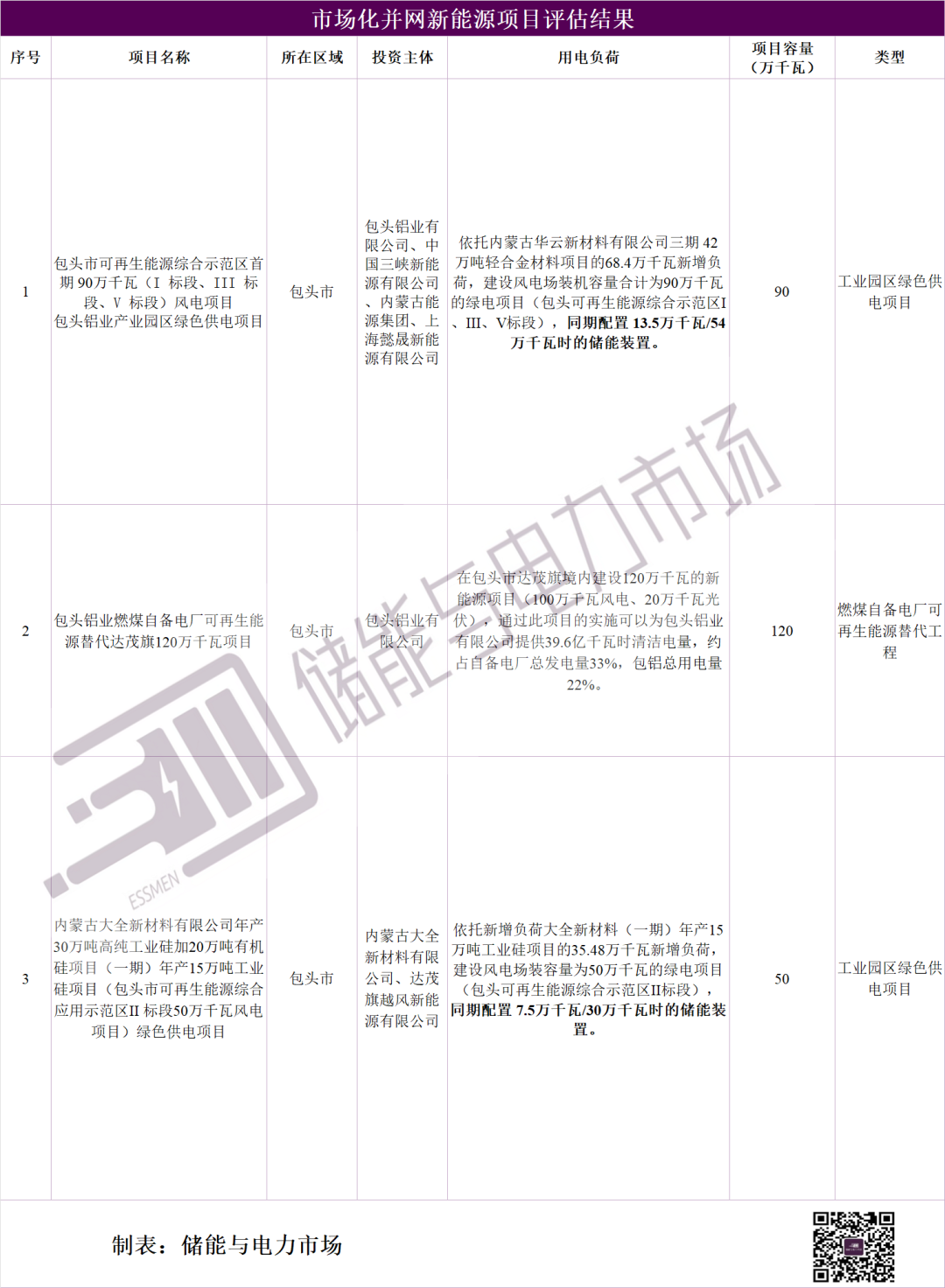 按照《內(nèi)蒙古自治區(qū)工業(yè)園區(qū)綠色供電項目實施細則》、《內(nèi)蒙古自治區(qū)燃煤自備電廠可再生能源替代實施細則》要求,自治區(qū)能源局組織評估單位和專家在《包頭市新能源新場景應(yīng)用方案》的基礎(chǔ)上,對包頭市申報的市場化新能源項目子方案進行了評估,3個項目均納入市場化新能源項目清單,共配建新能源規(guī)模260萬千瓦,其中風(fēng)電240萬千瓦、光伏20萬千瓦?,F(xiàn)將市場化新能源項目清單印發(fā)你們,并將有關(guān)要求通知如下。