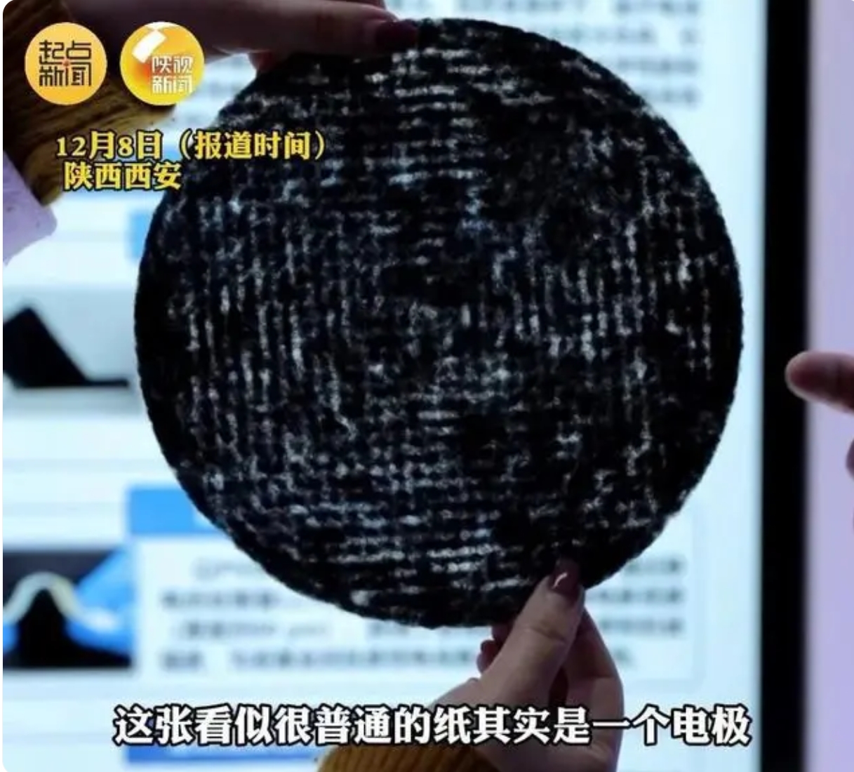 西北工業(yè)大學(xué)柔性電子研究院印刷電子所所長(zhǎng)艾偉:“紙基的電池特征就是薄、非常薄,如果和我們現(xiàn)有的柔性的屏結(jié)合到一起,整個(gè)器件都可以輕薄的特征就凸顯出來(lái)了,首先是實(shí)現(xiàn)了它的電極的制備,實(shí)現(xiàn)快速批量的制備,就可以實(shí)現(xiàn)它像造紙一樣連續(xù)的生產(chǎn)?!?