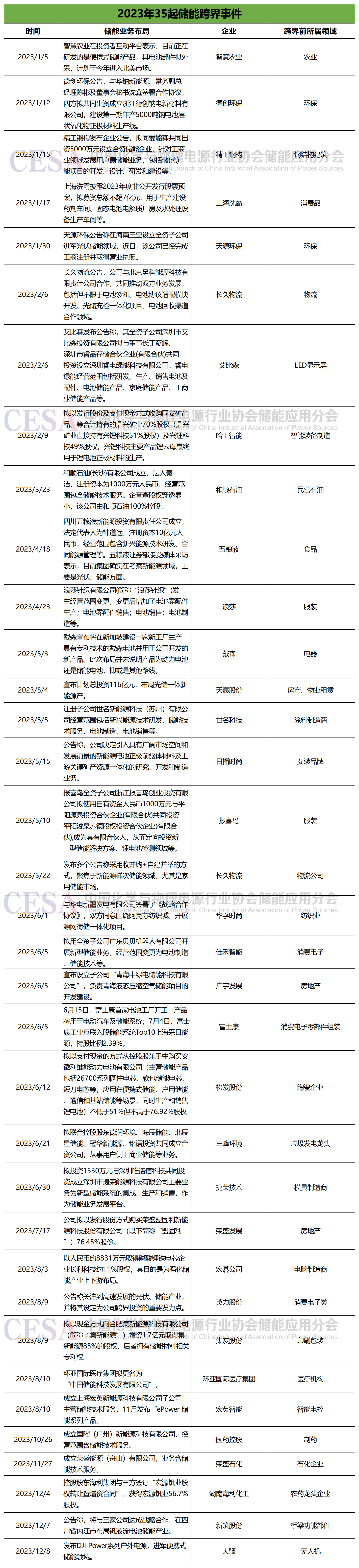 據(jù)中國(guó)儲(chǔ)能網(wǎng)不完全統(tǒng)計(jì),今年以來(lái),儲(chǔ)能領(lǐng)域已經(jīng)有35起跨界事件,這些跨界公司此前的主業(yè)可謂是五花八門,包括農(nóng)業(yè)、房地產(chǎn)、制藥、酒企、服裝、物流等。