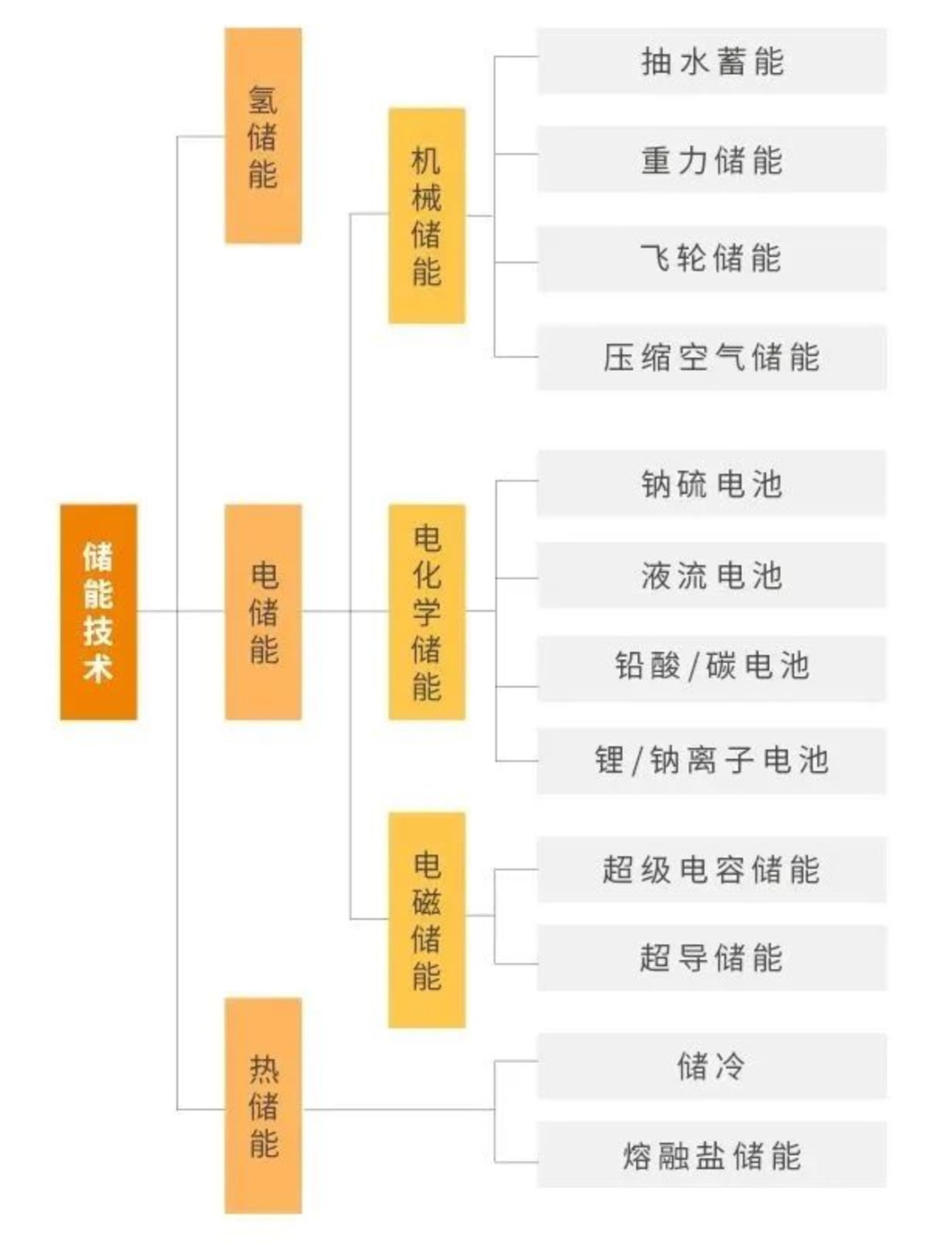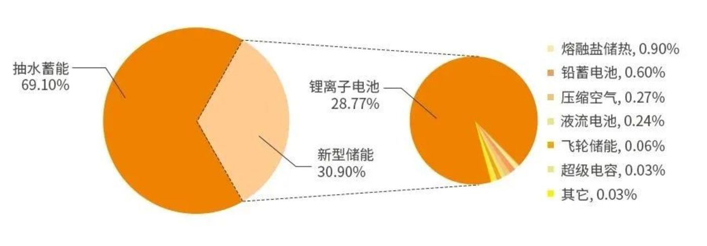 按照儲(chǔ)能原理和技術(shù)的不同,儲(chǔ)能技術(shù)可劃分為電儲(chǔ)能、熱儲(chǔ)能和氫儲(chǔ)能三大類。其中除抽水蓄能外的儲(chǔ)能技術(shù)行業(yè)統(tǒng)稱為新型儲(chǔ)能,主要包括鋰離子電池、液流電池、壓縮空氣儲(chǔ)能、飛輪儲(chǔ)能、氫(氨)儲(chǔ)能等。相對(duì)于抽水蓄能,新型儲(chǔ)能普遍具有建設(shè)周期短、選址靈活、響應(yīng)快速、調(diào)節(jié)能力強(qiáng)等優(yōu)勢(shì),能夠?yàn)殡娏ο到y(tǒng)提供更多時(shí)間尺度的調(diào)控能力。