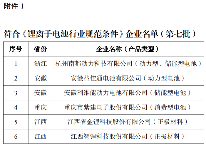 1.符合《鋰離子電池行業(yè)規(guī)范條件》企業(yè)名單(第七批)