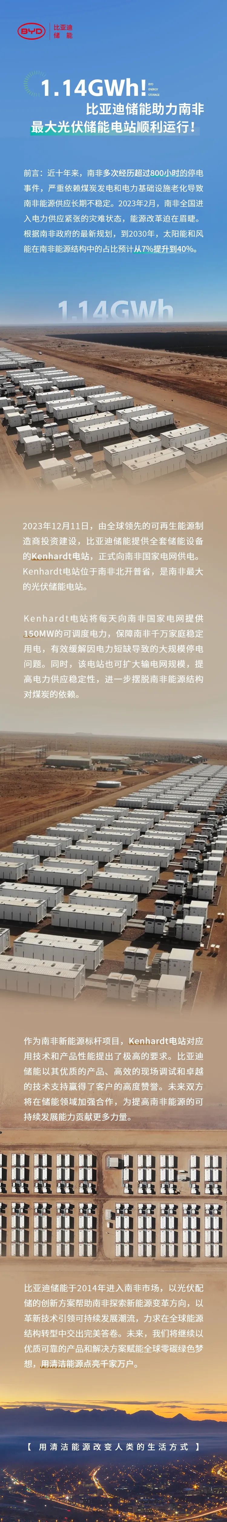 1.14 GWh!比亞迪儲能助力南非最大光伏儲能電站順利運行