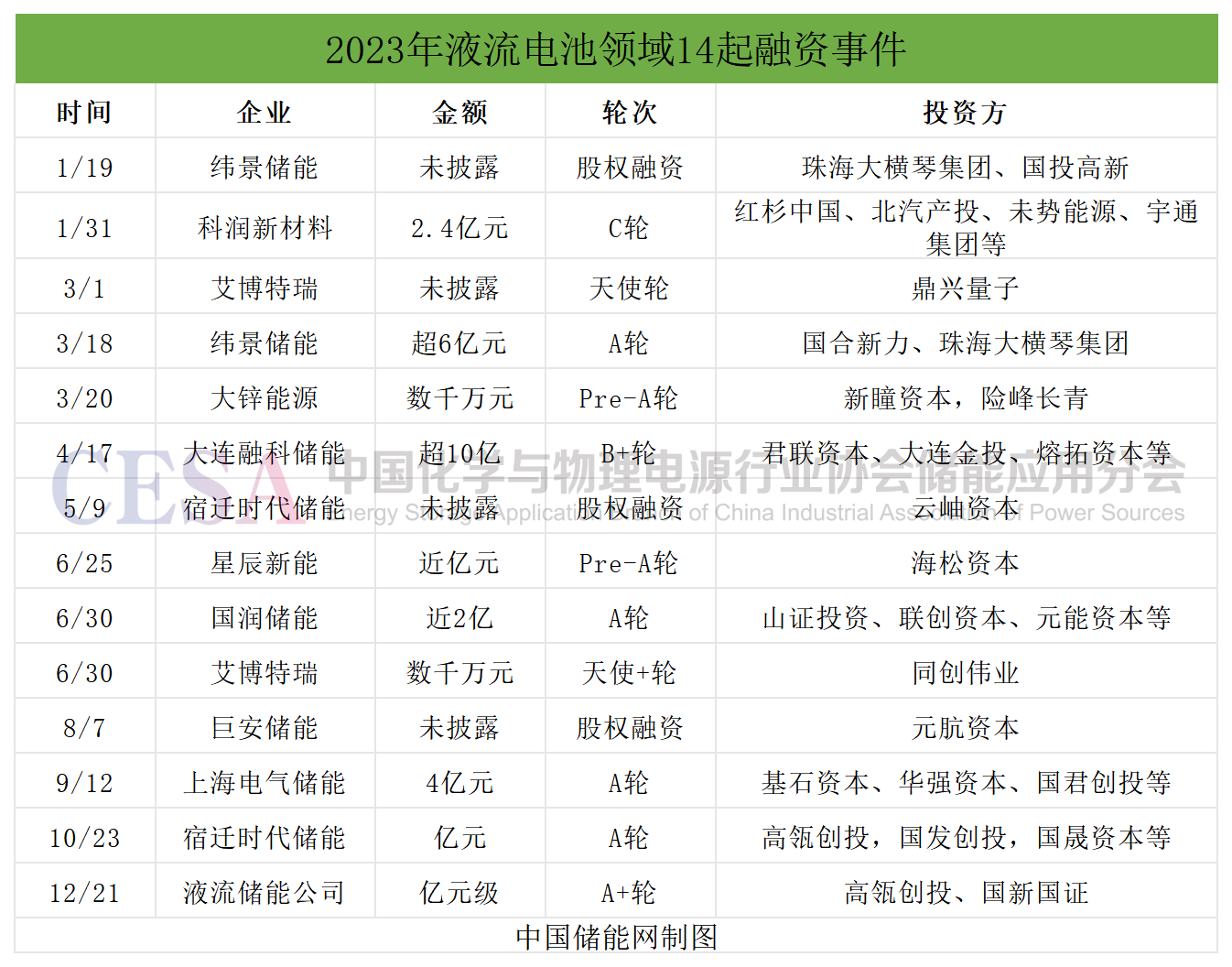 據(jù)中國儲能網(wǎng)不完全統(tǒng)計,今年以來發(fā)生在液流電池領(lǐng)域的融資事件有14起,融資規(guī)模超過了27億元,多數(shù)融資活動目的是為擴產(chǎn)。