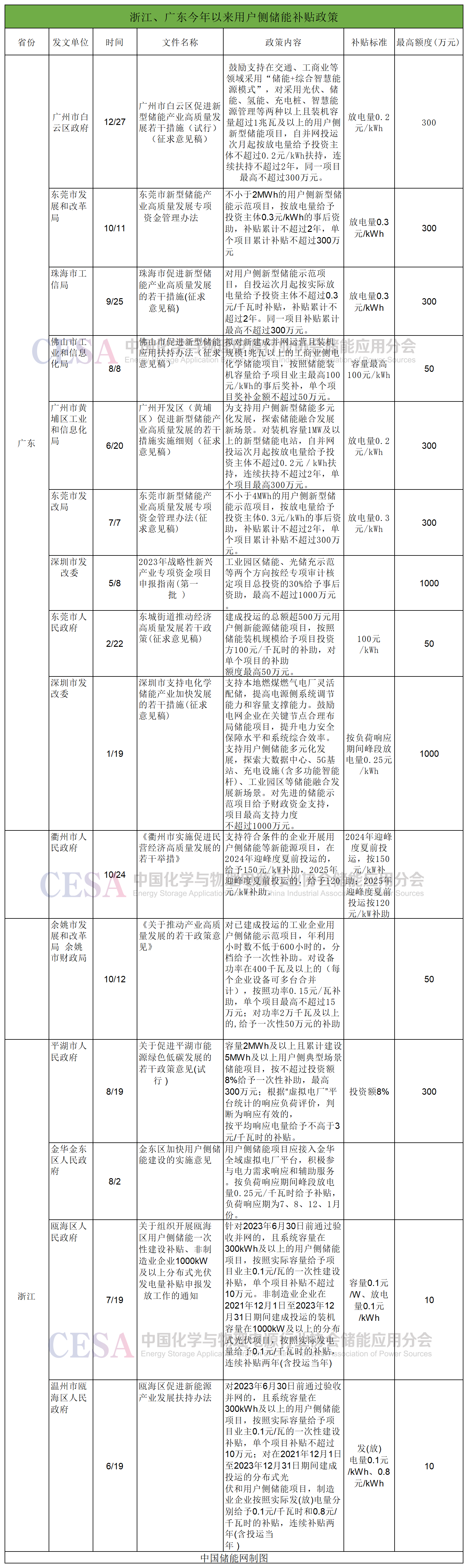 另外,今年以來(lái),廣東、浙江12個(gè)地方重點(diǎn)針對(duì)用戶側(cè)儲(chǔ)能出臺(tái)了15項(xiàng)補(bǔ)貼政策,其中,深圳市的政策補(bǔ)貼資金最高,為1000萬(wàn)元。