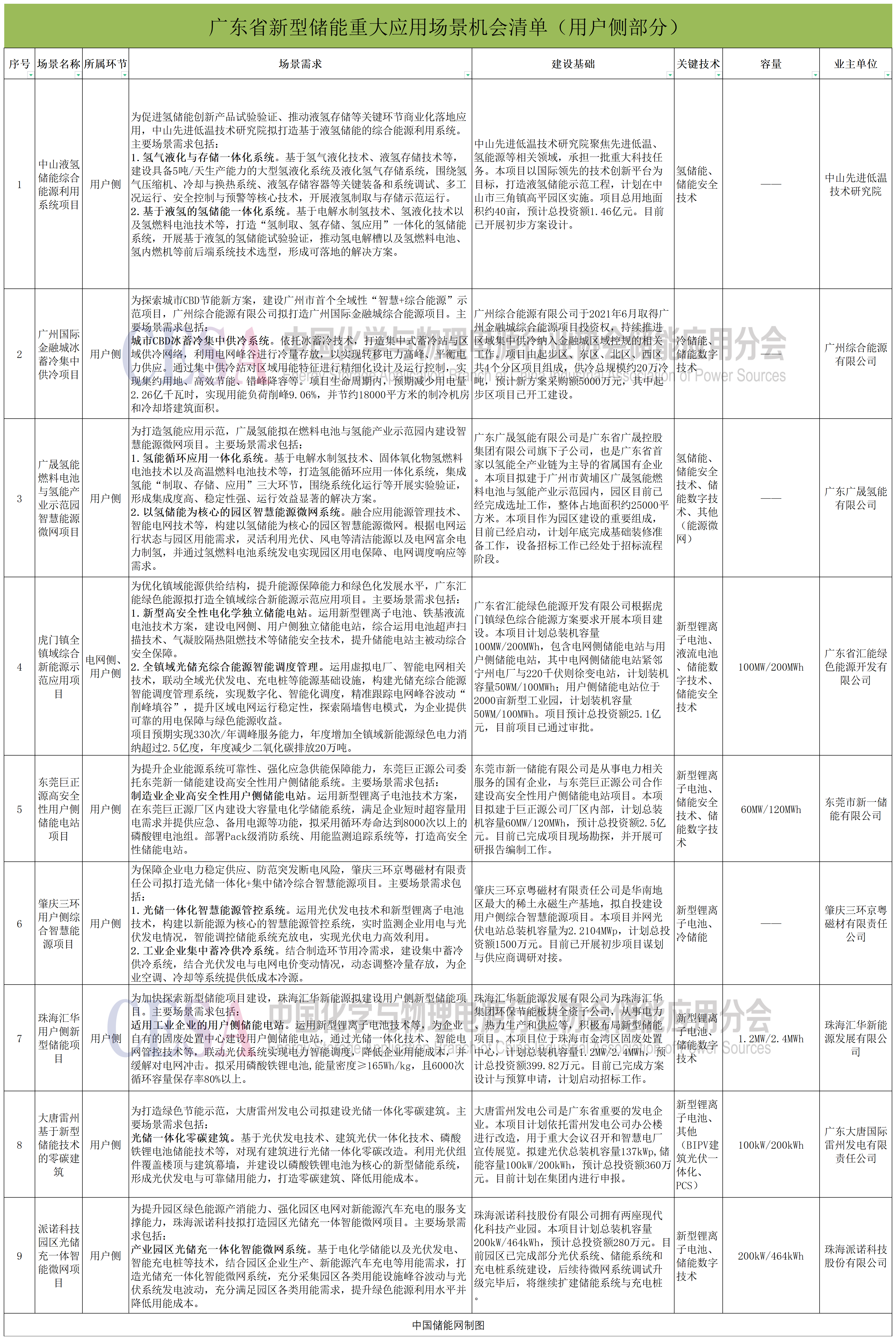 在12月初,廣東省發(fā)布了2023年新型儲(chǔ)能重大應(yīng)用場(chǎng)景機(jī)會(huì)清單。涉及全省15個(gè)地市,包含各類項(xiàng)目30個(gè),預(yù)計(jì)總投資額248.4億元,總裝機(jī)容量達(dá)2.14GW/3.82GWh,其中用戶側(cè)項(xiàng)目共有9個(gè)。