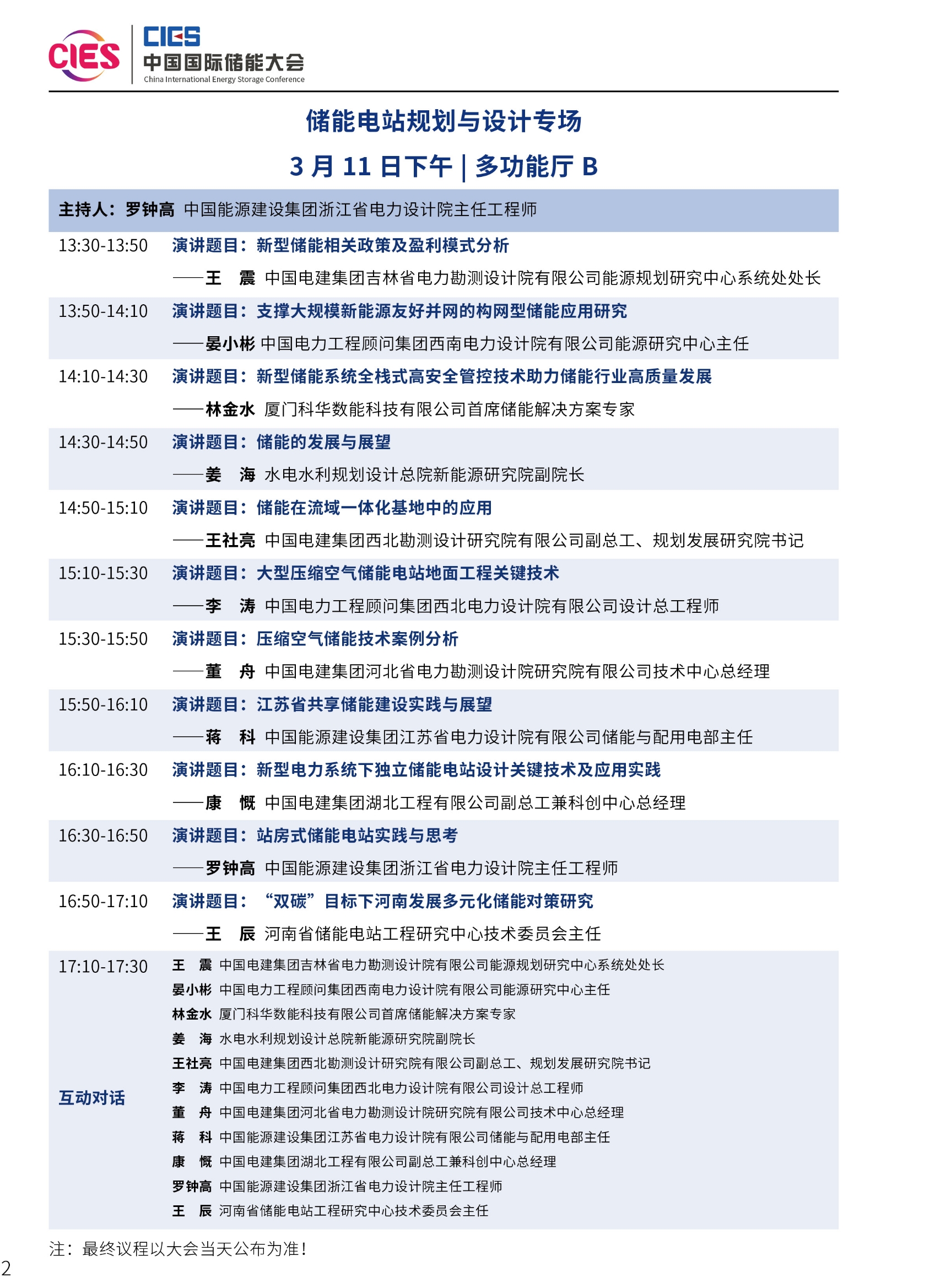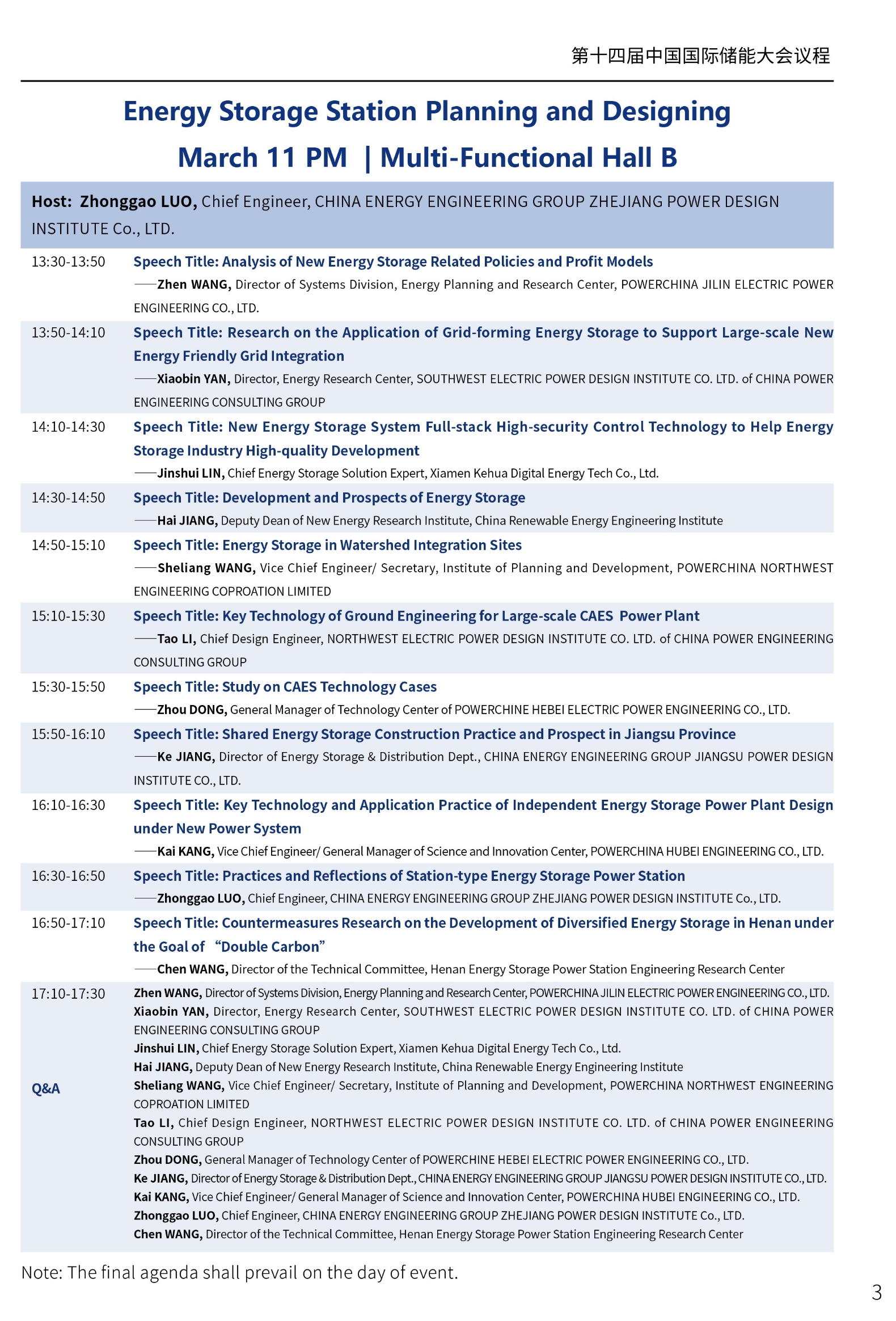 第十四屆中國國際儲能大會——儲能電站規(guī)劃與設計專場議程