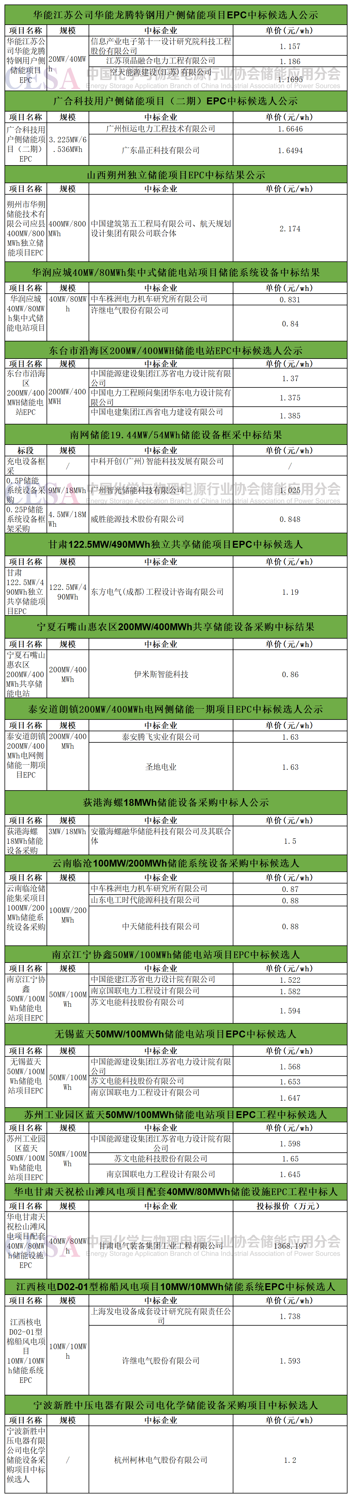 標(biāo)段二分散式、組串式;2h、4h儲(chǔ)能系統(tǒng)共兩家企業(yè)中標(biāo),湖北億緯動(dòng)力有限公司投標(biāo)單價(jià)為0.8688元/Wh,中國華能集團(tuán)清潔能源技術(shù)研究院有限公司投標(biāo)單價(jià)為0.8818元/Wh。
