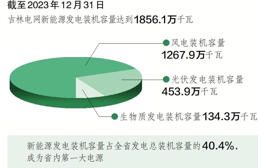 中國儲能網(wǎng)訊:截至2023年12月31日,吉林省新能源發(fā)電裝機(jī)容量達(dá)到1856.1萬千瓦,其中風(fēng)電裝機(jī)容量1267.9萬千瓦、光伏發(fā)電裝機(jī)容量453.9萬千瓦、生物質(zhì)發(fā)電裝機(jī)容量134.3萬千瓦,新能源發(fā)電裝機(jī)容量占全省發(fā)電總裝機(jī)容量的40.4%,超過煤電成為省內(nèi)第一大電源,新能源利用率連續(xù)5年保持95%以上。2023年,吉林新能源電量消納同比增長39.1%,比上一年增加53億千瓦時。