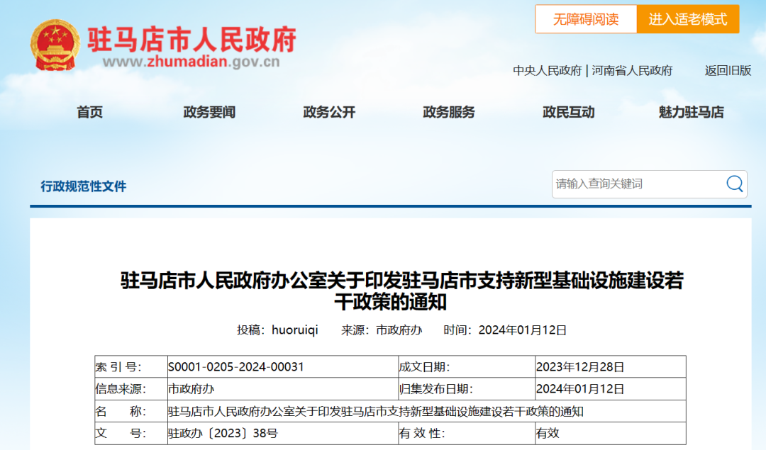駐馬店市支持新型基礎(chǔ)設(shè)施建設(shè)若干政策