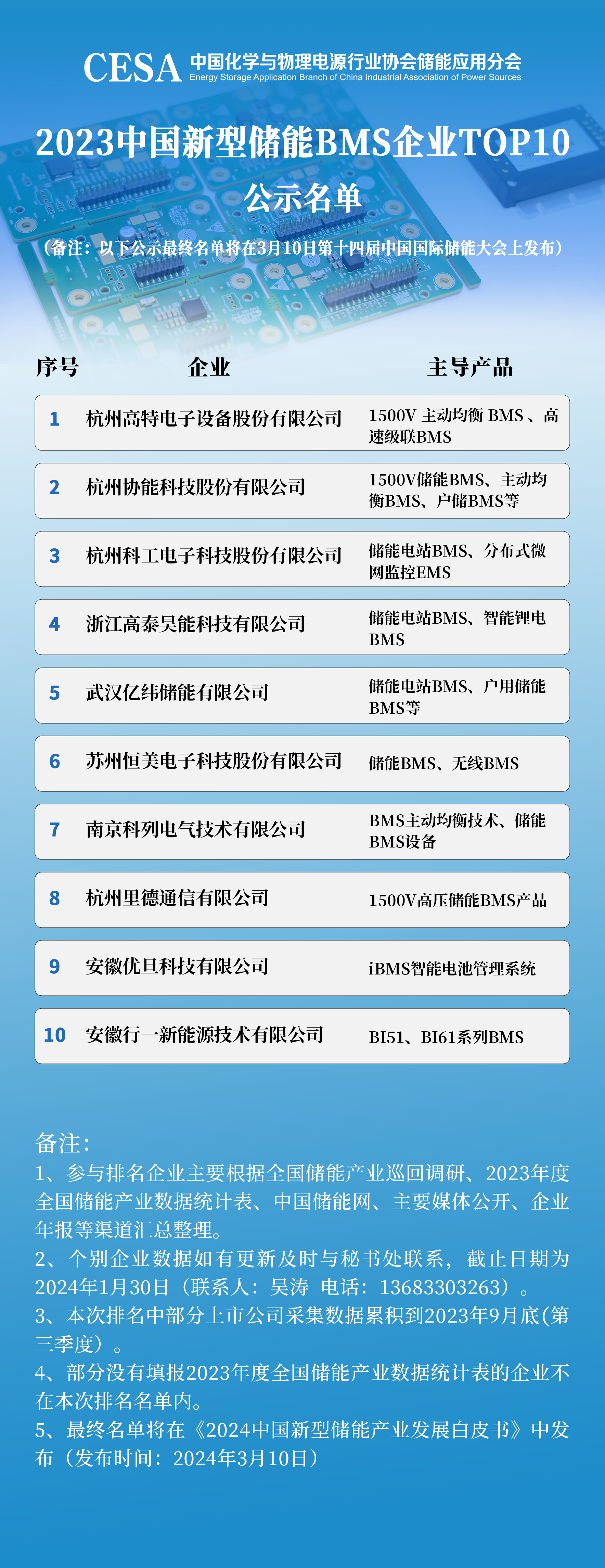 本次儲能產(chǎn)業(yè)鏈百強企業(yè)評選活動針對的對象主要是 CESA 儲能應(yīng)用分會廣大會員企業(yè)和與儲能業(yè)務(wù)緊密相關(guān)的上市公司,評價數(shù)據(jù)以2023年為準,主要通過協(xié)會實地走訪調(diào)研、會員企業(yè)年度數(shù)據(jù)申報、媒體披露和上市公司年報等多個渠道,最終形成2023中國新型儲能鋰離子電池企業(yè)TOP20、2023中國新型儲能系統(tǒng)集成企業(yè)TOP30、2023中國新型儲能PCS企業(yè)TOP30、2023中國新型儲能液流電池企業(yè)TOP30、2023中國工商業(yè)儲能企業(yè)TOP60、2023中國新型儲能BMS企業(yè)TOP10、2023中國新型儲能飛輪儲能企業(yè)TOP10、2023中國新型儲能溫控系統(tǒng)企業(yè)TOP20、2023中國新型儲能消防與安全企業(yè)TOP 20、2023中國新型儲能壓縮空氣儲能企業(yè)TOP10及2023中國新型儲能產(chǎn)業(yè)企業(yè)TOP100名單。