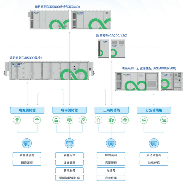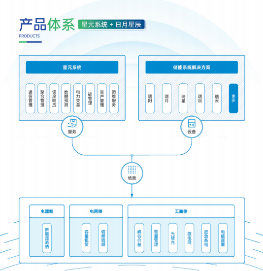 目前,國瑞協(xié)創(chuàng)已形成“星元系統(tǒng)+日月星辰=三大領域“的業(yè)務體系。以儲能系統(tǒng)集成解決方案為基座,國瑞協(xié)創(chuàng)布局智慧綠能運維解決方案及全生命周期服務管理,軟件、硬件及服務多維發(fā)力,產(chǎn)品覆蓋了發(fā)電側、電網(wǎng)側及工商側儲能三大領域,涉及虛擬電廠、碳資產(chǎn)管理、微電網(wǎng)、峰谷價差、應急備電、移動儲能、新能源消納、調峰調頻、獨立儲能等豐富的應用場景,助力用戶從能源消費者走向能源消費者+生產(chǎn)者+使能者。