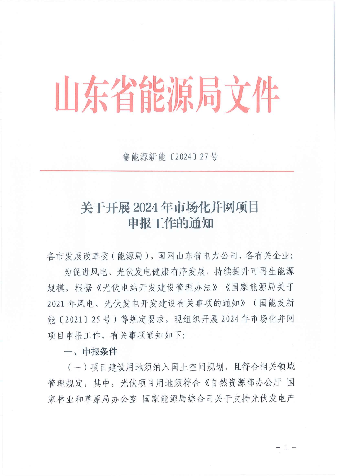 關(guān)于開展2024年市場化并網(wǎng)項目申報工作的通知
