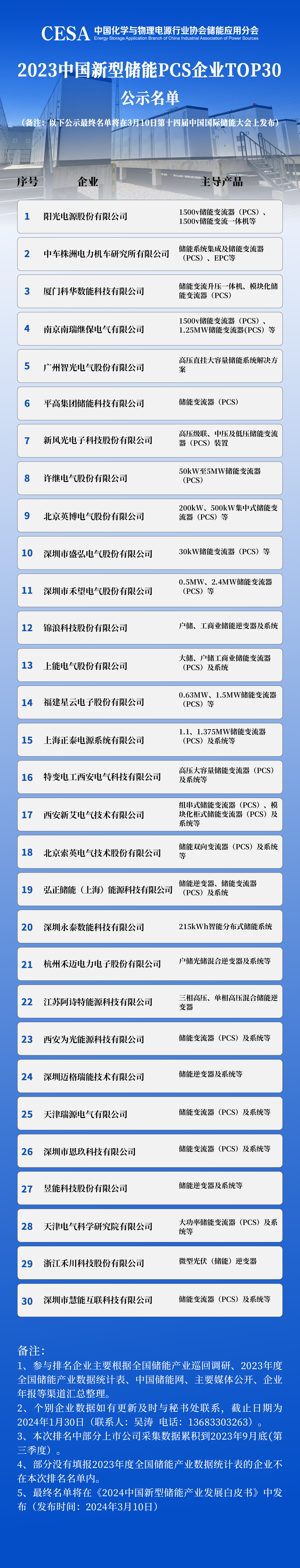 本次儲(chǔ)能產(chǎn)業(yè)鏈百強(qiáng)企業(yè)評選活動(dòng)針對的對象主要是 CESA 儲(chǔ)能應(yīng)用分會(huì)廣大會(huì)員企業(yè)和與儲(chǔ)能業(yè)務(wù)緊密相關(guān)的上市公司,評價(jià)數(shù)據(jù)以2023年為準(zhǔn),主要通過協(xié)會(huì)實(shí)地走訪調(diào)研、會(huì)員企業(yè)年度數(shù)據(jù)申報(bào)、媒體披露和上市公司年報(bào)等多個(gè)渠道,最終形成2023中國新型儲(chǔ)能鋰離子電池企業(yè)TOP20、2023中國新型儲(chǔ)能系統(tǒng)集成企業(yè)TOP30、2023中國新型儲(chǔ)能PCS企業(yè)TOP30、2023中國新型儲(chǔ)能液流電池企業(yè)TOP30、2023中國工商業(yè)儲(chǔ)能企業(yè)TOP60、2023中國新型儲(chǔ)能BMS企業(yè)TOP10、2023中國新型儲(chǔ)能飛輪儲(chǔ)能企業(yè)TOP10、2023中國新型儲(chǔ)能溫控系統(tǒng)企業(yè)TOP20、2023中國新型儲(chǔ)能消防與安全企業(yè)TOP 20、2023中國新型儲(chǔ)能壓縮空氣儲(chǔ)能企業(yè)TOP10及2023中國新型儲(chǔ)能產(chǎn)業(yè)企業(yè)TOP100名單。