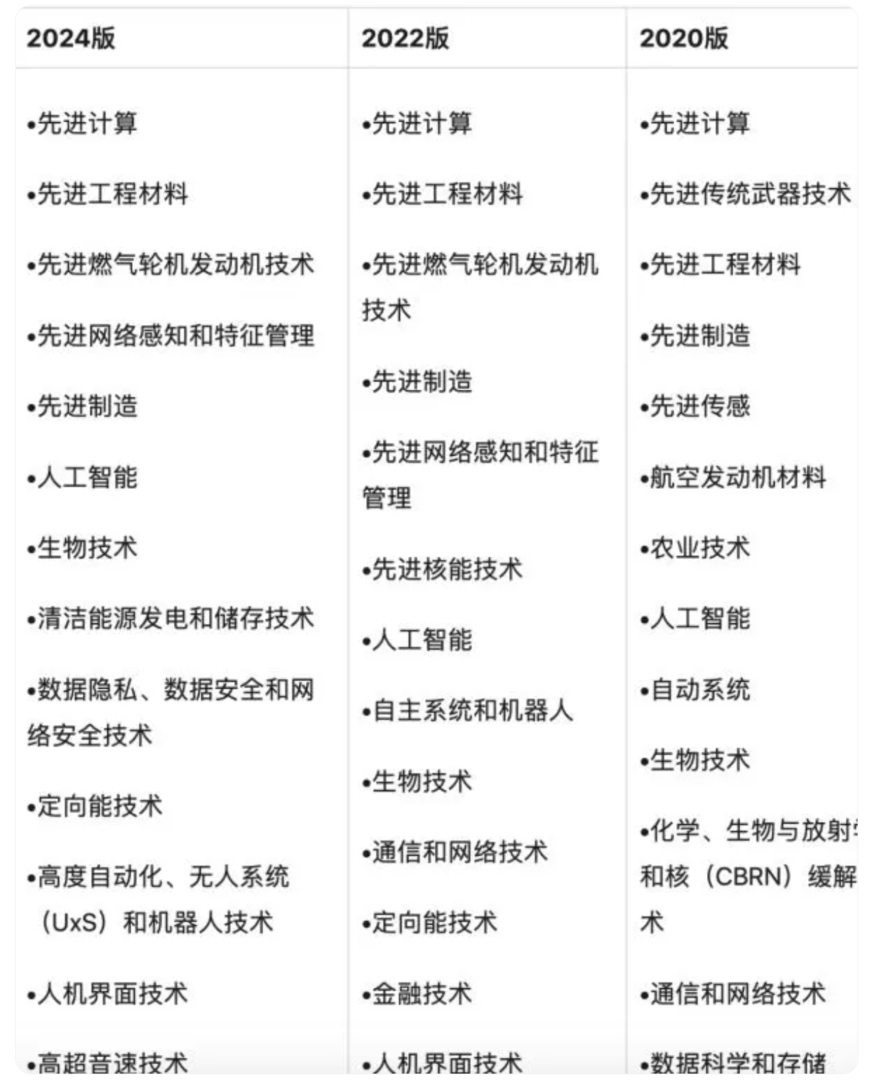 NSTC指出,更新后的關(guān)鍵和新興技術(shù)清單可以為美國政府和聯(lián)邦機(jī)構(gòu)指示有助于提升美國技術(shù)競爭力和國家安全的具體方向,并為未來技術(shù)發(fā)展的優(yōu)先順序提供信息,從而幫助長遠(yuǎn)保障美國的技術(shù)領(lǐng)導(dǎo)力,保持關(guān)鍵領(lǐng)域的競爭優(yōu)勢,并有效應(yīng)對國家安全威脅。