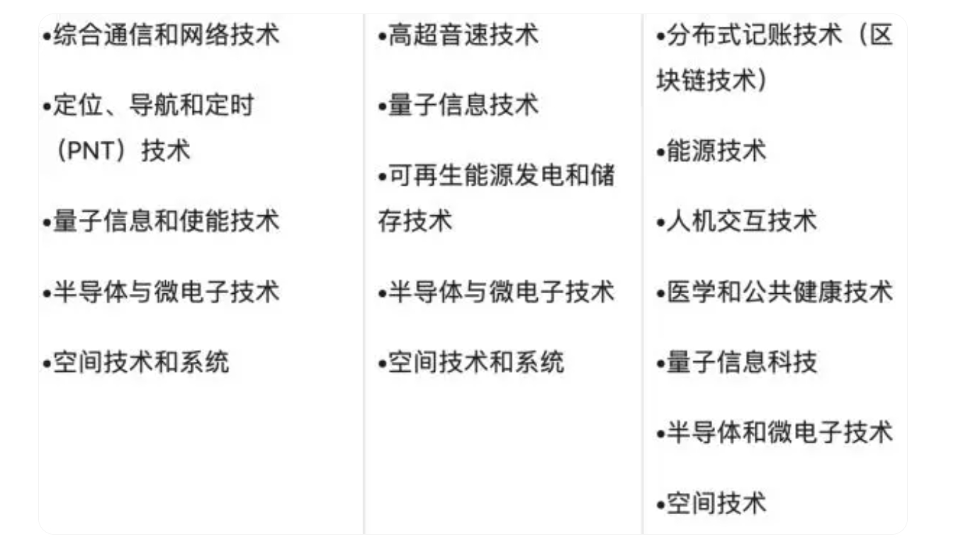 跟2022年相比,除了清潔能源技術(shù)方面的改變,還新增了定位、導(dǎo)航和定時(shí)(PNT)技術(shù)領(lǐng)域。