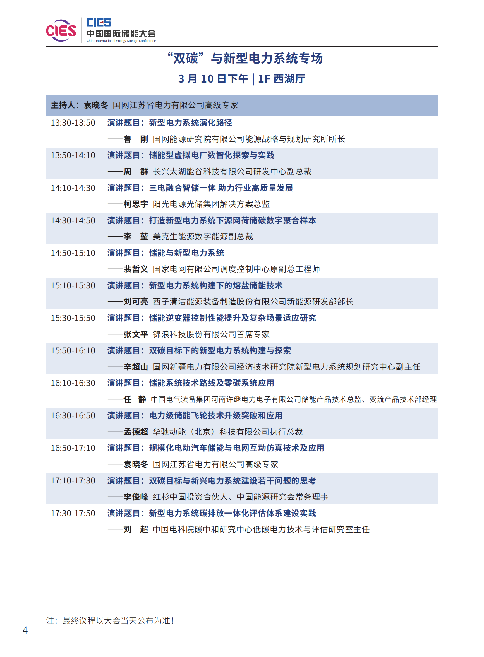 本次大會(huì)將安排大會(huì)開幕式暨院士/專家主題報(bào)告、工業(yè)綠色微電網(wǎng)、“雙碳”與新型電力系統(tǒng)、雙碳與新型電力系統(tǒng)暨南網(wǎng)儲(chǔ)能與可再生能源專場(chǎng)、新型儲(chǔ)能系統(tǒng)集成解決方案(上、中、下)、儲(chǔ)能電站規(guī)劃與設(shè)計(jì)、國(guó)際儲(chǔ)能、儲(chǔ)能檢測(cè)、認(rèn)證及標(biāo)準(zhǔn)、儲(chǔ)能溫控系統(tǒng)與安全、長(zhǎng)時(shí)儲(chǔ)能、工商業(yè)儲(chǔ)能、新型儲(chǔ)能資本專場(chǎng)、儲(chǔ)能電站建設(shè)與運(yùn)維、多功能儲(chǔ)能(構(gòu)網(wǎng)型與混合)、新型電力系統(tǒng)與儲(chǔ)能電站建設(shè)、儲(chǔ)能新品發(fā)布(4場(chǎng))等22個(gè)專場(chǎng)論壇。