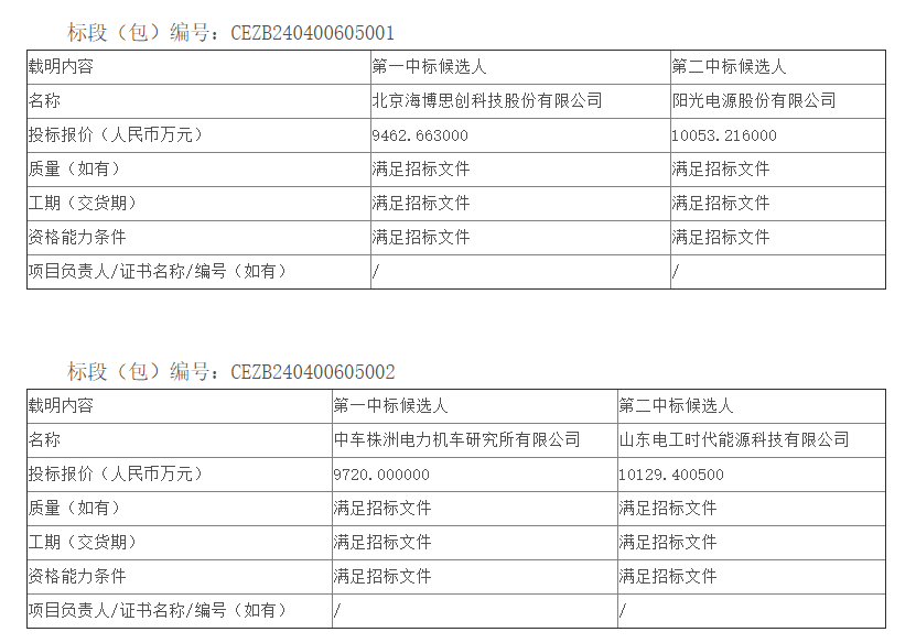 第一中標(biāo)候選人:中車株洲所報(bào)價(jià)9720萬(wàn)元,折合單價(jià)約0.648元/Wh