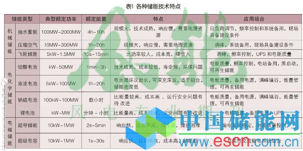 目前,儲能技術路線主要分機械儲能(包括抽水蓄能、壓縮空氣儲能、飛輪儲能等)、電化學儲能(包括鉛酸電池、鋰離子電池、液流電池、鈉硫電池等)和電磁儲能(包括超導儲能、超級電容器儲能等)等幾種,各種技術的特點如下表所示。