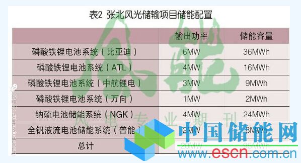國家電網(wǎng)公司在河北省張北建設了風光儲輸示范項目,為100MW風電和40MW光伏項目配置了20MW/95MWh的儲能,儲能部分采用鋰電池、鈉硫電池和全釩液流電池三種技術,由不同廠家提供,如下表所示: