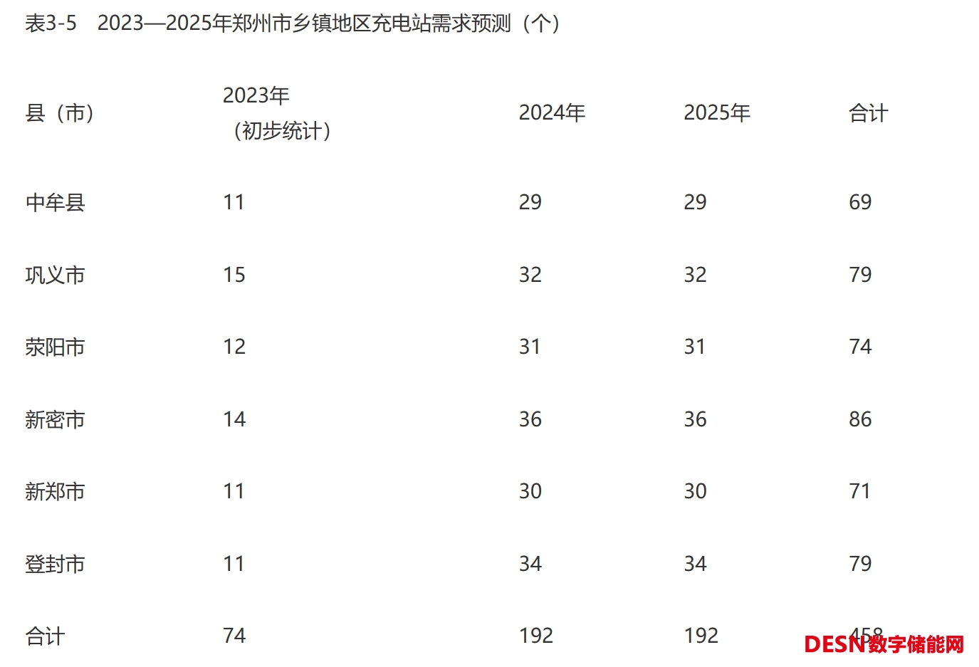 未來,鄉(xiāng)鎮(zhèn)地區(qū)將是新能源汽車增長(zhǎng)的熱點(diǎn)區(qū)域,應(yīng)加速配建公用充電設(shè)施,交通便利的場(chǎng)所以快充為主慢充為輔,靠近居住小區(qū)、自然村的場(chǎng)所以慢充為主快充為輔。鄭州市周邊區(qū)縣(市)現(xiàn)有22個(gè)街道、64個(gè)鎮(zhèn)、10個(gè)鄉(xiāng)、273個(gè)社區(qū)、1654個(gè)自然村,為了激發(fā)農(nóng)村地區(qū)新能源汽車消費(fèi)潛力,2023年在每個(gè)鄉(xiāng)鎮(zhèn)至少建設(shè)1座公用充電站,2024—2025年加大建設(shè)力度,每年按照社區(qū)和自然村總量的10%配建公共充電站,單站配建充電設(shè)施不少于10個(gè)。2023—2025年,在鄉(xiāng)鎮(zhèn)地區(qū)將新增458個(gè)充電站、4580個(gè)充電設(shè)施。