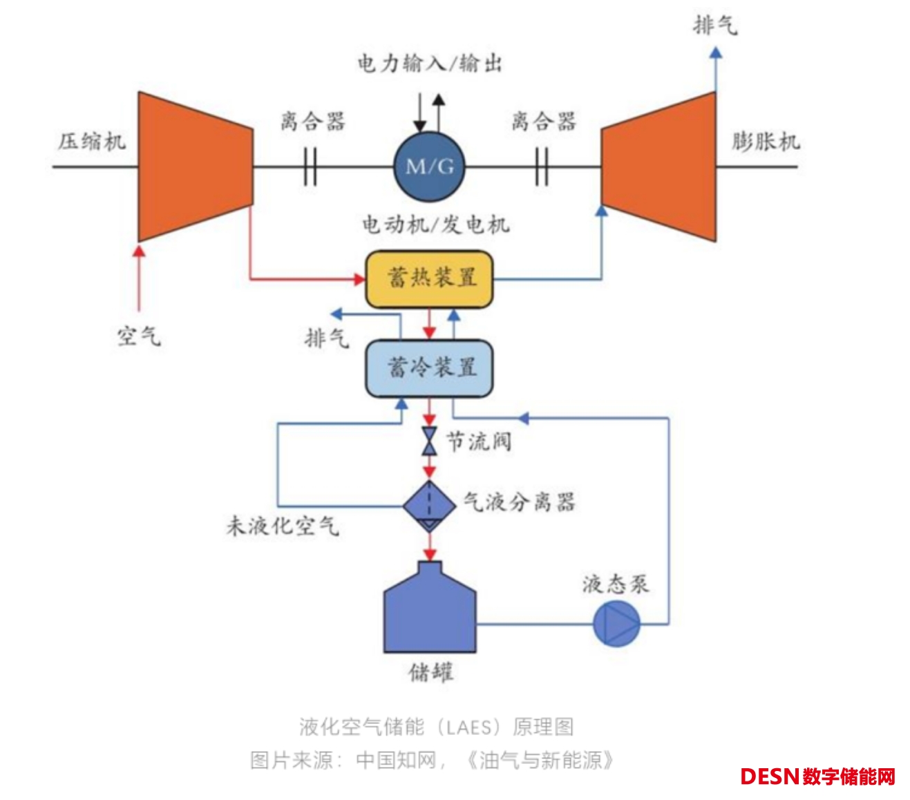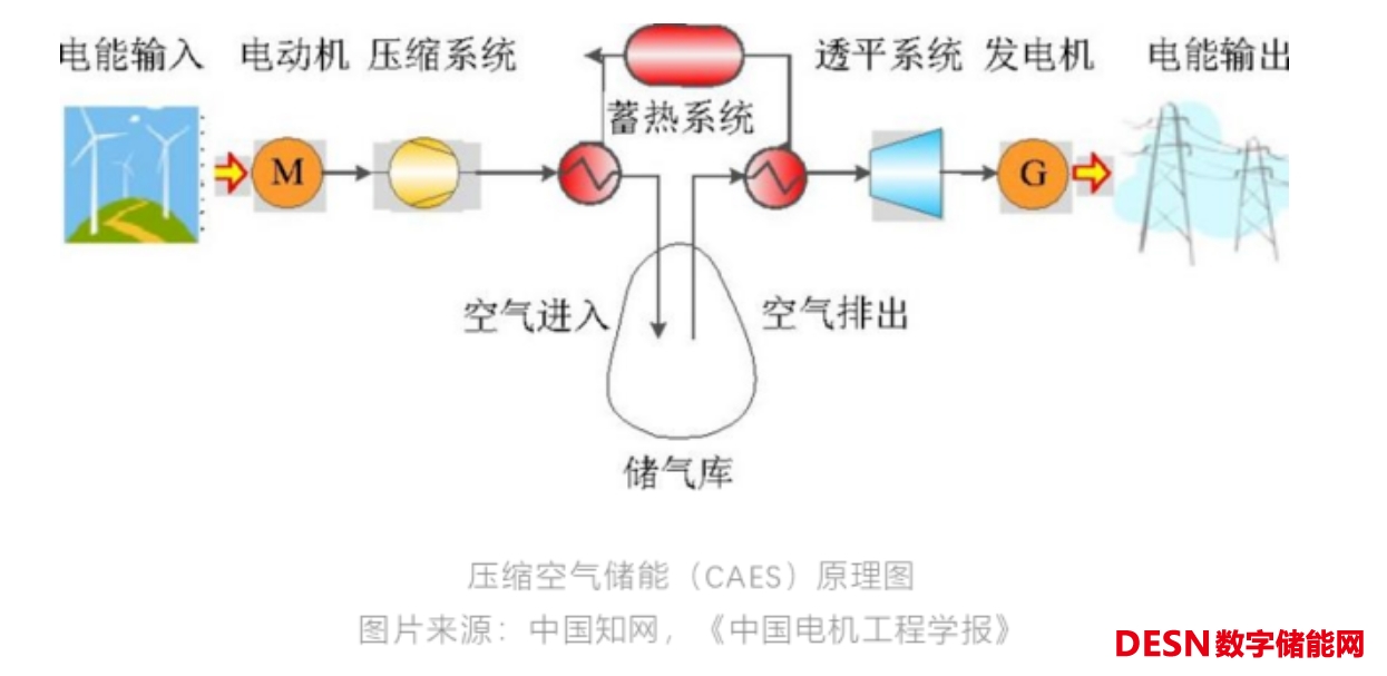 壓縮空氣儲能(CAES)在用電低谷,通過壓縮機把空氣壓縮成高壓空氣,在用電高峰,釋放高壓空氣,驅(qū)動膨脹機就可以驅(qū)動發(fā)電機發(fā)電。