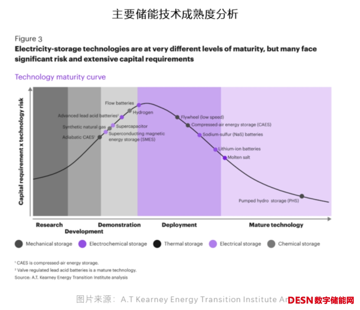 儲能技術(shù)大致可以劃分為電化學(xué)儲能和物理儲能兩大類,不同技術(shù)的成熟度也不盡相同: