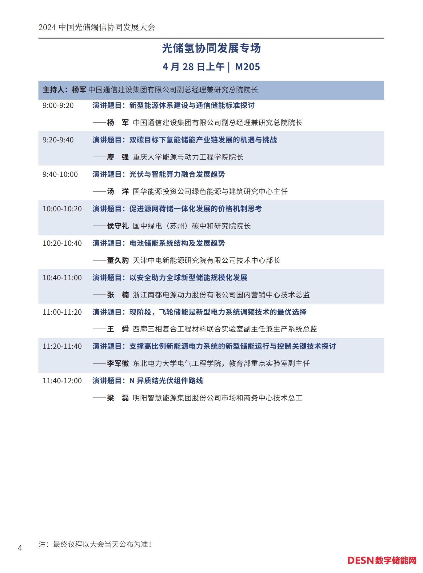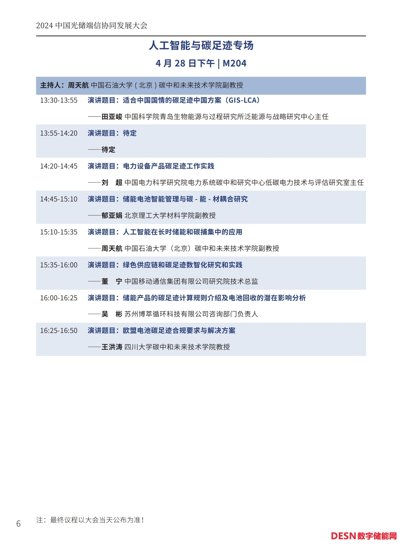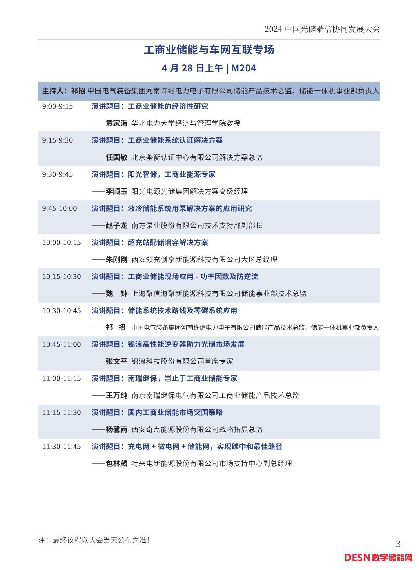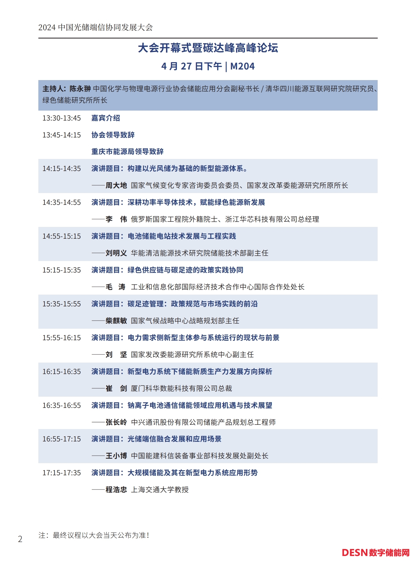 本屆大會(huì)將安排:大會(huì)開幕式暨碳達(dá)峰高峰論壇、工商業(yè)儲(chǔ)能與車網(wǎng)互聯(lián)專場(chǎng)、光儲(chǔ)氫協(xié)同發(fā)展專場(chǎng)、儲(chǔ)能系統(tǒng)集成與智能安全預(yù)警系統(tǒng)專場(chǎng)、人工智能與碳足跡專場(chǎng)等五個(gè)專場(chǎng)論壇。以下為本次大會(huì)主要議程(最終議程以活動(dòng)當(dāng)天公布為準(zhǔn))。