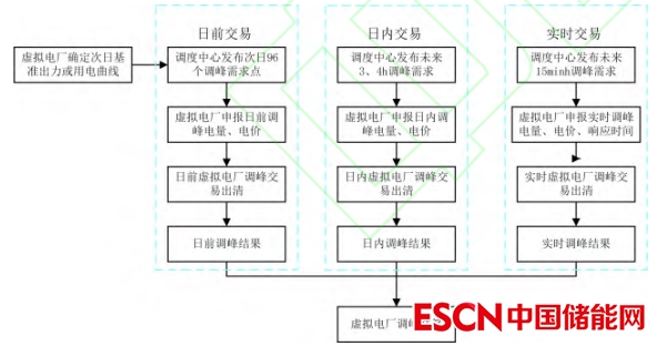 (4)交易執(zhí)行。調(diào)度中心完成次日虛擬電廠的預(yù)調(diào)用計(jì)劃后,虛擬電廠根據(jù)計(jì)劃確定次日各類(lèi)聚合資源的調(diào)用容量,形成調(diào)用方案。次日,調(diào)度中心對(duì)虛擬電廠進(jìn)行實(shí)時(shí)調(diào)用。、