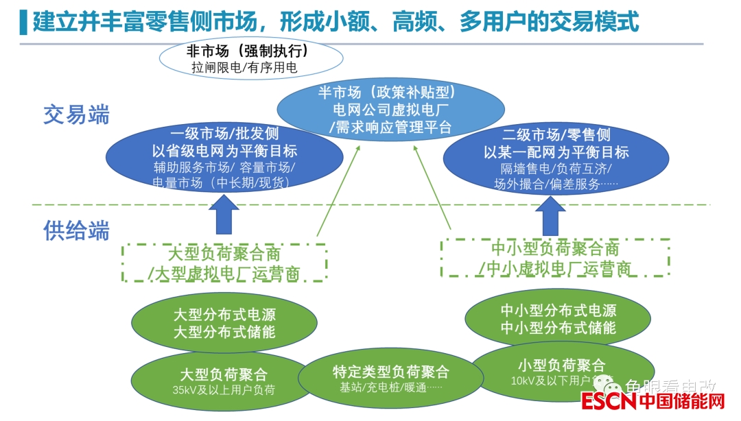 現(xiàn)有的,適應“自上而下”平衡模式的,集中式的電力市場,在商業(yè)模式上也需要與未來“自下而上”的電力運行技術機制,進行適配。